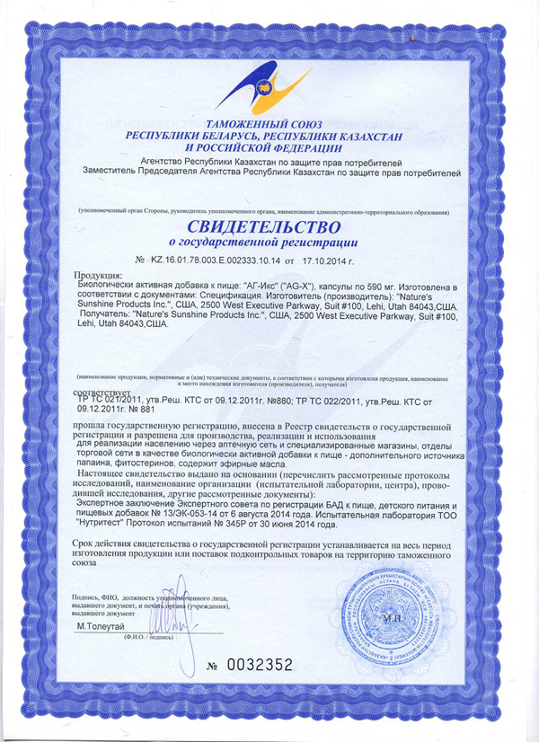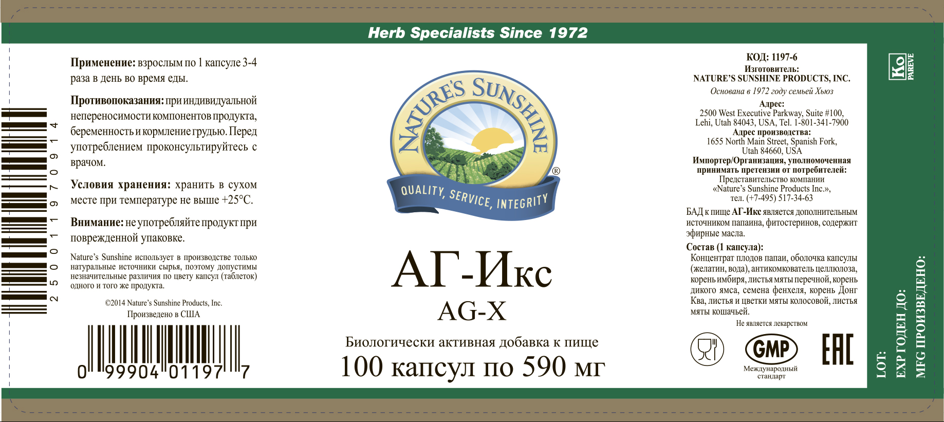 БАД к пище АГ-Икс является дополнительным источником папаина, фитостеринов, содержит эфирные масла.