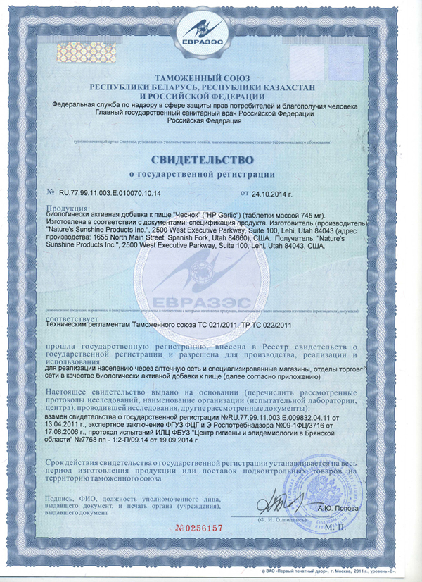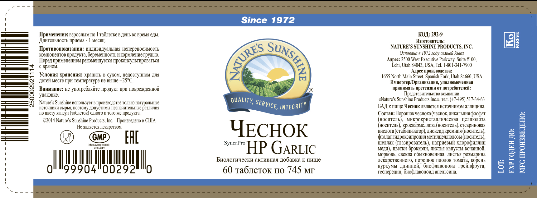 Компания NSP разработала уникальную технологию сохранения всех достоинств чеснока. Специальная оболочка, содержащая хлорофилл, обеспечивает сохранение ингредиентов чеснока, причем таблетка растворяется лишь в тонкой кишке, что исключает раздражение слизистой желудка. Это и отличает Чеснок NSP от аналогов других компаний. Кроме того, сравнительная оценка по активности аллицина (главного гликозида чеснока) показывает, что препарат NSP является лучшим среди аналогов в мире. В отличие от натурального чеснока, Чеснок не имеет резкого запаха, не вызывает сердцебиения, спазма желчных протоков и печеночных колик.