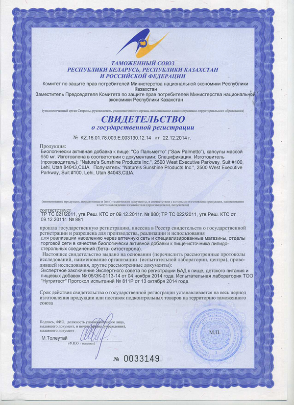 БАД к пище Со Пальметто является дополнительным источником липидо-стерольных соединений (в-ситостерола).